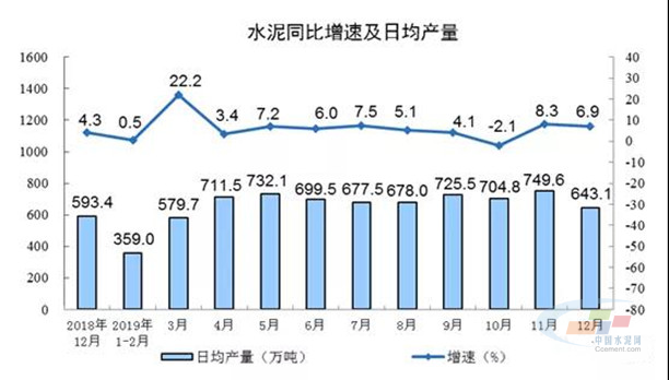 2019年,全国水泥产量23.3亿吨,同比增长6.1%,增速比上年提高3.1个百分点;平板玻璃产量9.3亿重量箱,同比增长6.6%,增速比上年提高4.5个百分点。